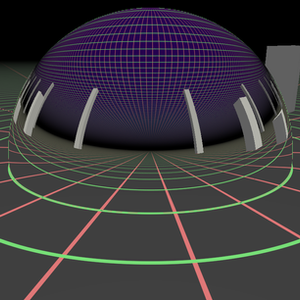 MS: Just, a raycaster. A sphere in one space, a plane in another. Ray's that hit the sphere are "continued" from the plane based on the position and angle they hit the sphere.